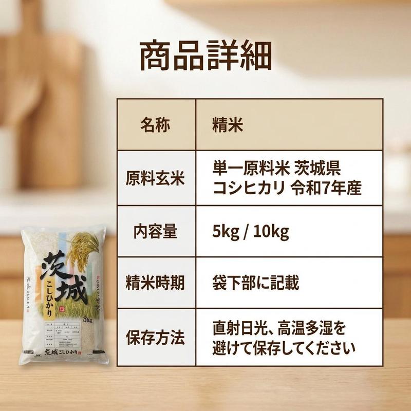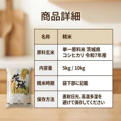 令和7年産茨城県産コシヒ力リ精米単一米5kg·10KG。国産単一原