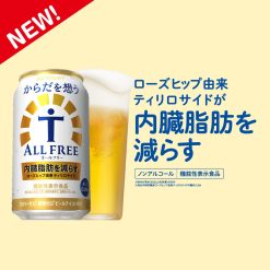 ローズヒップ由来ティリロサイドの働きで内臓脂肪を減らす「からだ想うオールフリー(機能性表示食品)」から、お客様からのたくさんの声にお応えし、500mlサイズを新発売! 機能関与成分「ローズヒップ由来ティリロサイド」は、ローズヒップ果実から抽出した自然素材。渋みなどがない自然な味わいのため、ビールテイストを邪魔しません。一番麦汁を使用し、麦芽由来のビールらしい飲みごたえを実現。また、グッとくる刺激や味の濃さに繋がる苦味も強化。ビール好きで内臓脂肪が気になる方や、休肝日にもオススメです。