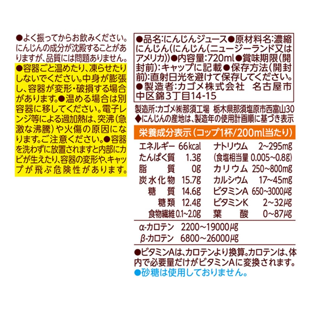 - 原材料: 濃縮にんじん(にんじん(ニュージーランド又はアメリカ))