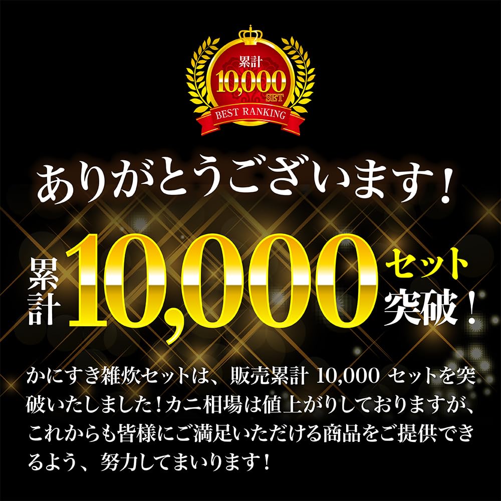 - かにすき(カニ鍋)からシメの雑炊まで楽しめる、かにすき雑炊セット「大容量版」です。総重量1.8kg セット内容:カニハーフポーション500g×3パック、専用スープ3パック、雑炊用ほぐし身3粒、食べ方説明書付き。