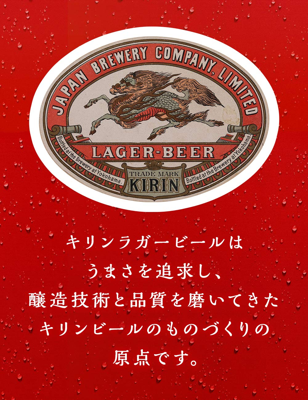 - 「キリンラガービール」は、130年以上愛され続けてきた、キリン伝統のうまさの本格ビール。創業当時からの品質へのこだわりとおいしさは、現在にまで継承されています。