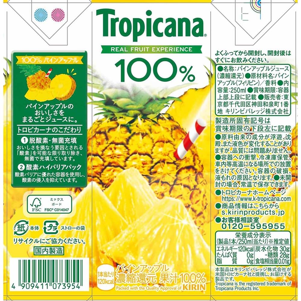 「トロピカーナ 100% パインアップル」は、100%果実のおいしさと栄養がつまった100%パインアップルジュースです。
