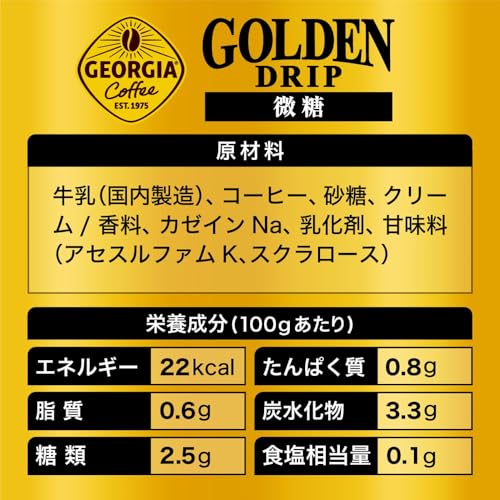 - 原材料:牛乳(国内製造)、コーヒー、砂糖、クリーム/香料、カゼインNa、乳化剤、甘味料(アセスルファムK、スクラロース)