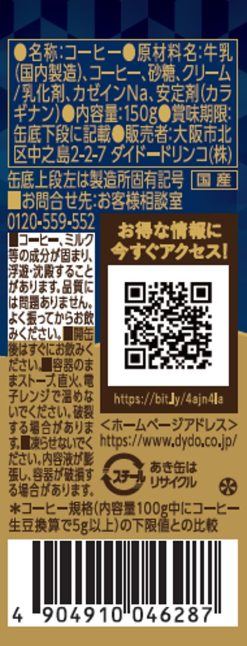 - 原材料:牛乳、コーヒー、砂糖、乳化剤カゼインNa、安定剤(カラギナン)、甘味料(アセスルファムK)
