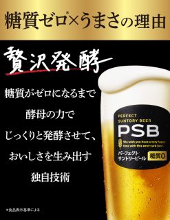 - サントリーがプレモルで培った醸造技術を結集。ビールど真ん中のおいしさと糖質0を両立した、これからの時代のビール。パーフェクトサントリービール[PSB]。