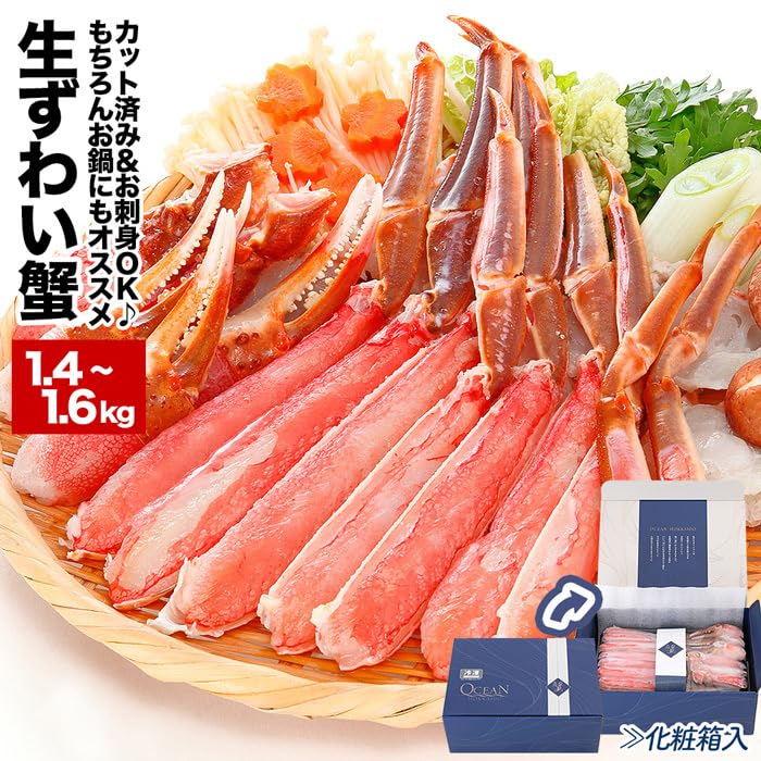 詳細: 食べやすいようカット済みなので面倒な殻剥きは不要。鍋やお刺身にてお楽しみください。 【名称】冷凍生ズワイガニ 【内容量】700~800g×2P(計1.4~1.6kg) 【主要原材料】ズワイガニ 【産地】ロシア産又はアメリカ産(5%未満)又は北海道産(5%未満)又はカナダ産(5%未満)※カニの産地は、令和3年の使用実績順 【加工地】根室市 【保存方法】要冷凍(-18℃以下で保存) 【賞味期限】冷凍保存で約1か月(解凍後は冷蔵庫で保管し、当日中にお召し上がりください)