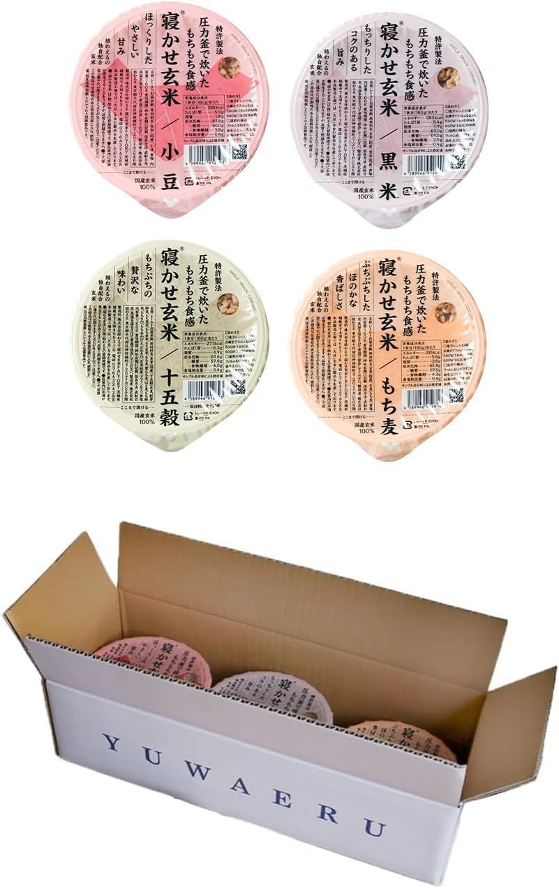 寝かせ玄米ごはんパック 4種ミックス 160g×12食 (小豆ブレンド/黒米ブレンド 各4食、もち麦ブレンド/十五穀ブレンド 各2食)|玄米 常温保存 パックご飯 備蓄 一人暮らし レトルト 雑穀 [1616]
