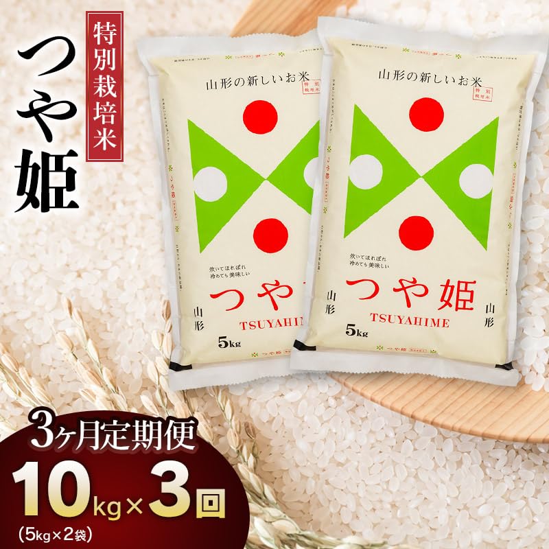 - 【容量】特別栽培米つや姫精米10kg(5kg×2袋)×3回 ※5kgずつの分割配送はできませんので、ご注意願います。