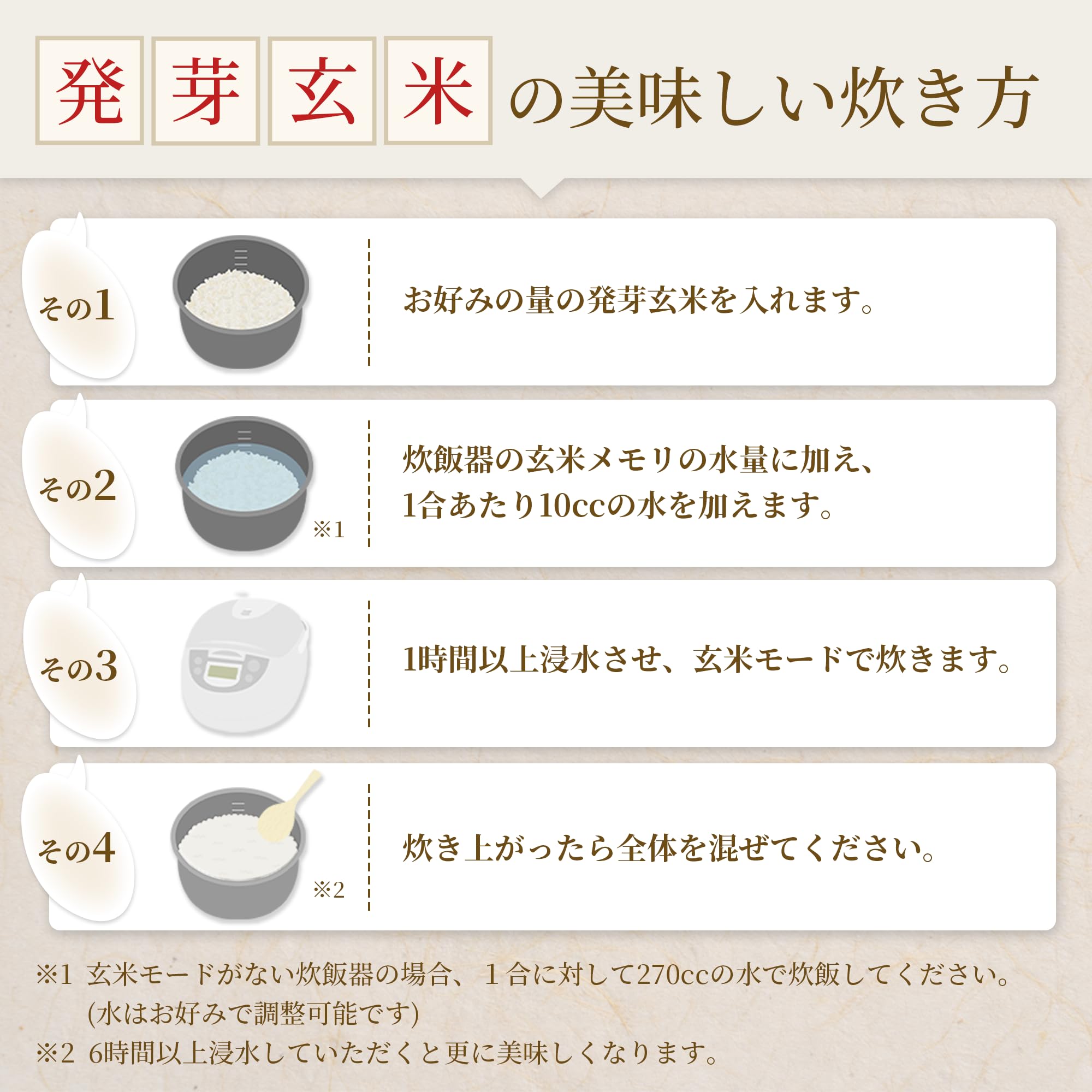 - 【白米モードでも可能】発芽玄米が白米モードで美味しく炊けます