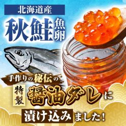 ★☆★ 注意:「出荷予定日」「お届け予定日」については、表示されている日時では対応しておりません。「カートに入れる」の下部に表示されている発送日時をご参照くださいませ。★☆★ 服部商店は旭川市内で老舗の青果店を営んでおり、コンビニ・ホテル・旅館・炉端等に配達卸業が主体の店舗です。 昔は鮮魚卸をしていた店主が選んだ北海道産の秋鮭の魚卵を手作りの秘伝の特製醤油ダレに付け込み店に並べて販売してます。 今回の特製いくら醤油漬けは1瓶80g×5瓶の合計400gを当社の特別卸価格にて旭川市のふるさと納税にて限定でお届けいたします。 冷凍便にて到着しますので自然解凍にて家庭用の冷蔵庫で約1週間以内にお召し上がりください。 大根おろしを添えて食べれば炉端・料亭での美味しい特製いくら丼を御自宅にて味わえます。 すぐに食べない時は冷凍庫にて長期保存も大丈夫ですのでゆっくりとお召上がり下さい。 【ご入金確認後、順次発送予定】 ※到着希望日のご指定はお受けできません。 ※数に限りがございますので、お受け取りいただけなかった場合の再送はいたしかねます。ご了承くださいませ。 ■保存方法 冷凍庫にて保管下さい。 解凍後はお早めにお召し上がりください。 ■原材料 鮭卵(イクラ)、醤油、味醂、かつお節エキス、調味料(アミノ酸等)、(原材料に小麦、大豆を含む) ■配送不可地域 沖縄県・離島 【ご入金確認後、順次発送予定】 ※到着希望日のご指定はお受けできません。 ※数に限りがございますので、お受け取りいただけなかった場合の再送はいたしかねます。ご了承くださいませ。