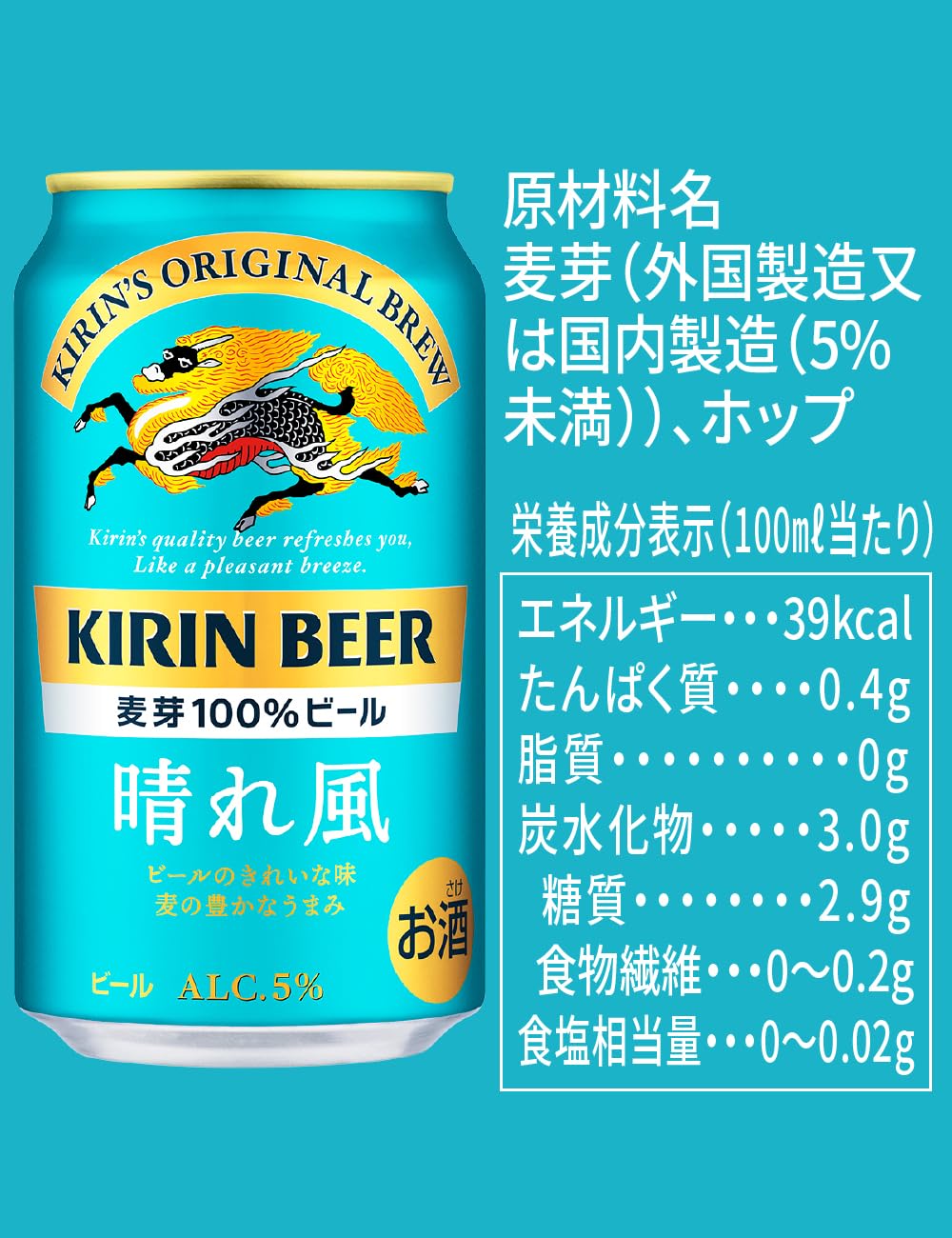 詳細: 【キリンビール 晴れ風】爽やかな香りを感じられる飲みやすくきれいな味わいが特長のビール。