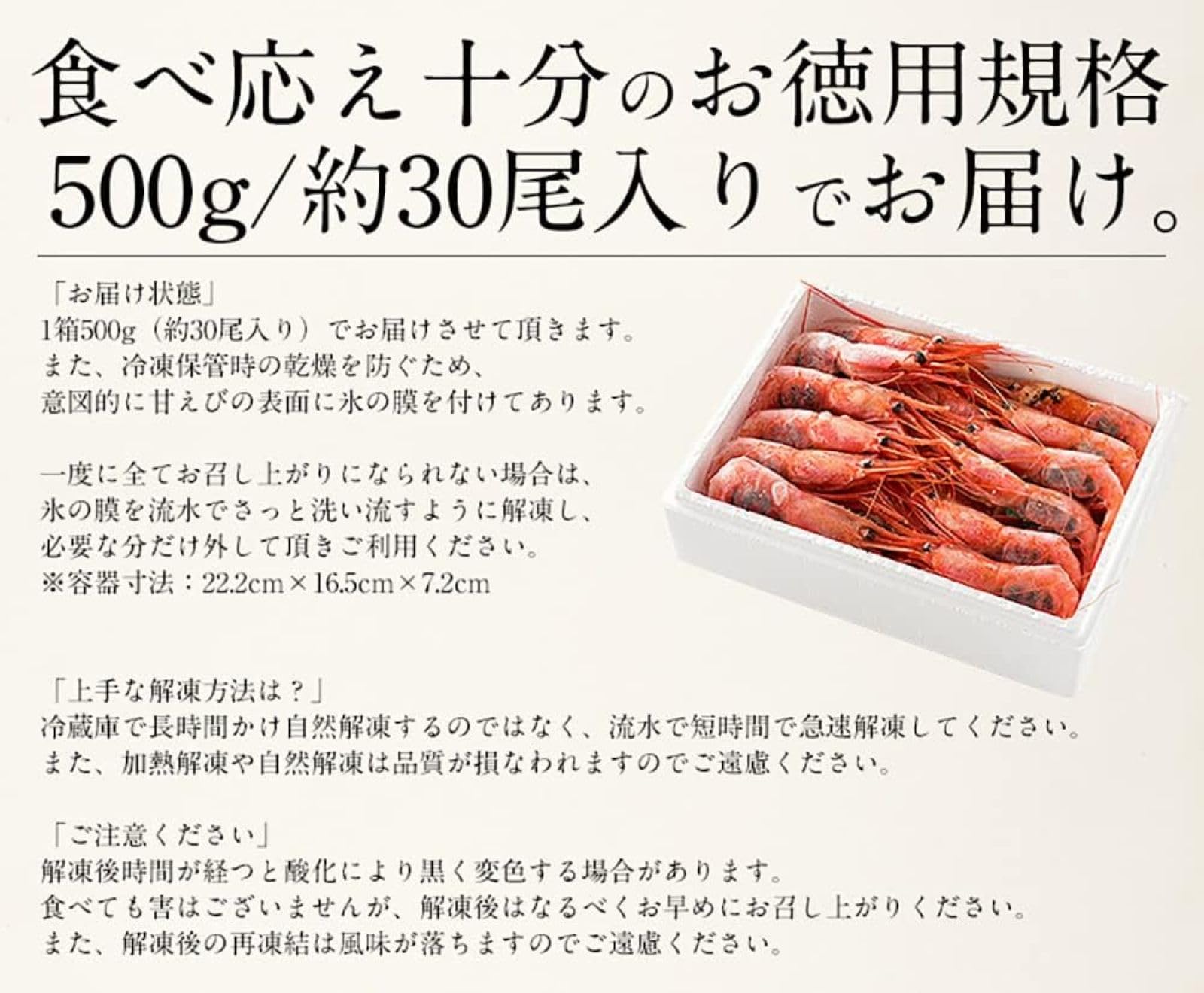港ダイニングしおそう 甘エビ 子持ち 刺身用 越前産 えび お祝い 03.特大サイズ 500g 約30尾入り ギフト