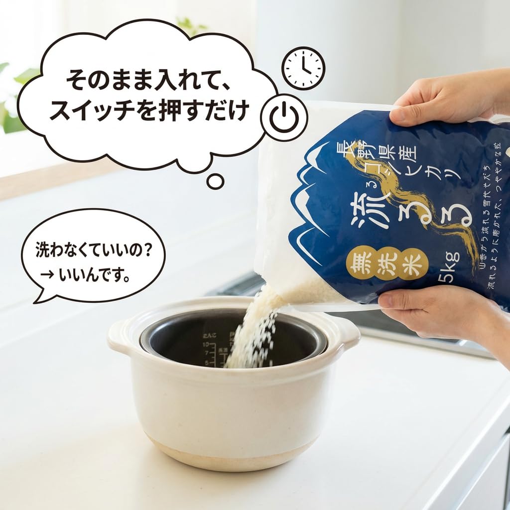 - 【無洗米だから研ぎ洗い不要】 そのまま水を入れて炊くだけ。 平日の夜でも・子育て中でも、美味しいご飯が 「洗う」ひと手間なく食卓に並びます。