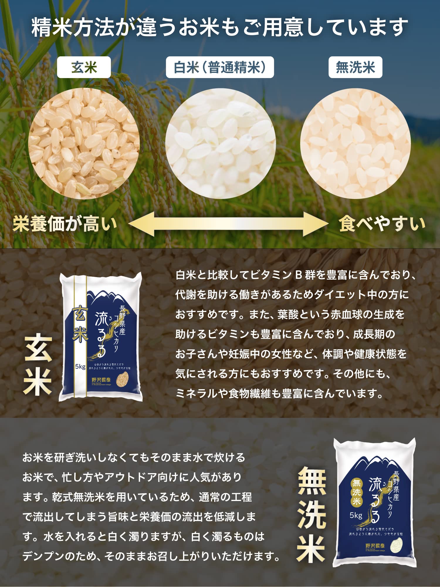 - 【お米の特徴】昼夜の寒暖差が大きい長野県の気候と豊富な雪解け水により、ツヤがあり粒がしっかりとしたコシヒカリに仕上がっています。