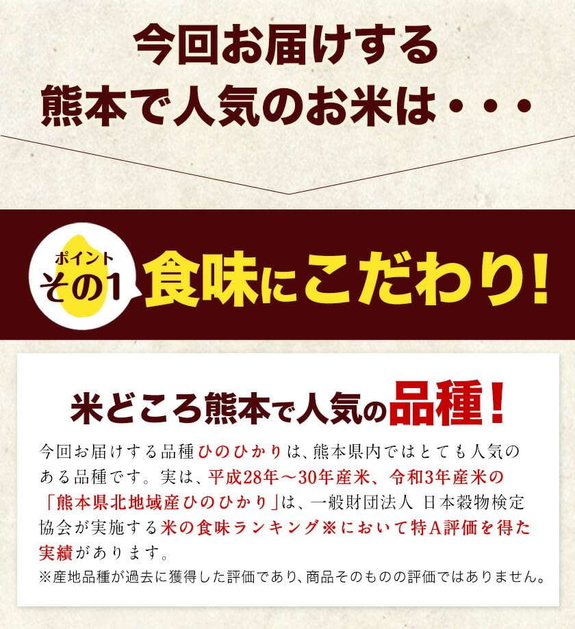 九州を代表するお米「ひのひかり」! 名称:米 産地:単一原料米 熊本県産(玉東町産含む) 品種:ひのひかり 産年:令和7年産 内容量:白米 5kg(5kg×1袋)/隔月6回定期 精米年月日:米袋に記載 賞味期限:お早めにお召し上がりください。 保存方法:冷暗所や冷蔵庫などで保存してください。