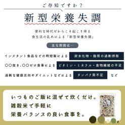 - 【原材料】胚芽押麦?黒米?裸麦?黒大豆?大豆?赤米?青大豆?小豆?緑米?もちきび?はと麦?アマランサス?白胡麻?黒胡麻?金胡麻