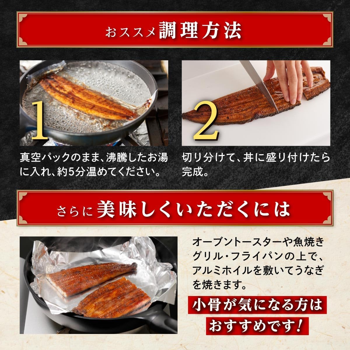 - 急速冷凍で美味しさ閉じ込め。レンジや湯煎での簡単調理で元のふっくら感がよみがえります。丑の日・父の日ギフトにも好評