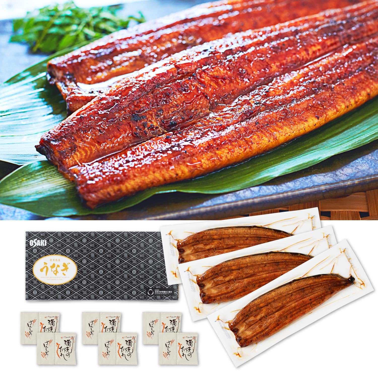 うなぎ蒲焼(鹿児島県大崎町産)、醤油(大豆・小麦を含む)、みりん、発酵調味料、砂糖・増粘剤